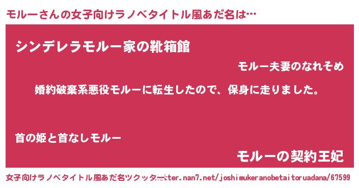 | 男性向けラノベタイトル風あだ名 | 『モルースレイヤー』『緋弾のモルー』 |