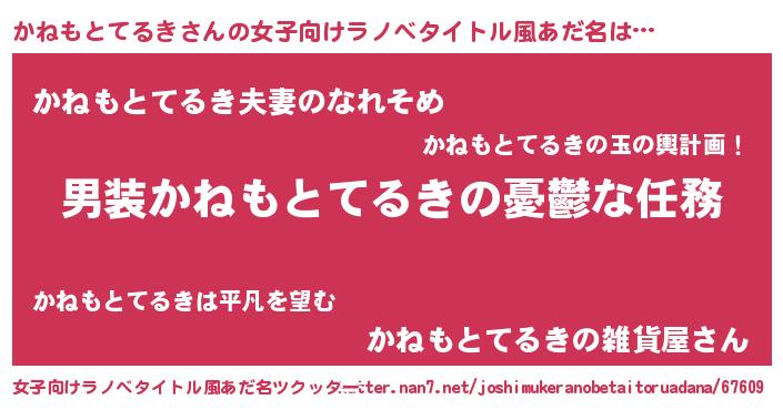 | 男性向けラノベタイトル風あだ名 | 『うちのかねもとてるきが世界を掌握している!』 |
