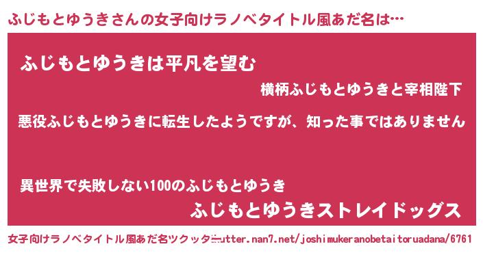 | 男性向けラノベタイトル風あだ名 | 『この素晴らしい世界にふじもとゆうきを!』 |
