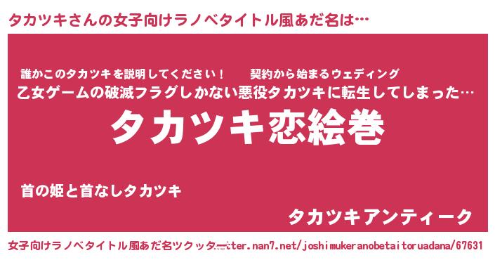 | 男性向けラノベタイトル風あだ名 | 『ノーゲーム・ノータカツキ』 |