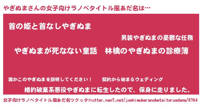 | 胡散臭い通販商品みたいなあだ名 | 『ハリウッド女優が絶賛した100年もののヴィンテージワイン…その名も「やぎぬま」』 |