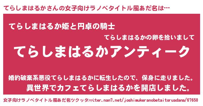 | 胡散臭い通販商品みたいなあだ名 | 『テレビで話題の高麗人参…その名も「てらしまはるか」』 |