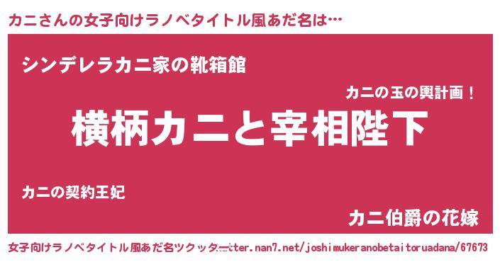 | 男性向けラノベタイトル風あだ名 | 『カニに滅ぼされるだけの簡単なお仕事です』 |