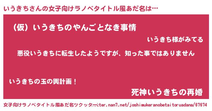 | 男性向けラノベタイトル風あだ名 | 『この素晴らしい世界にいうきちを!』 |