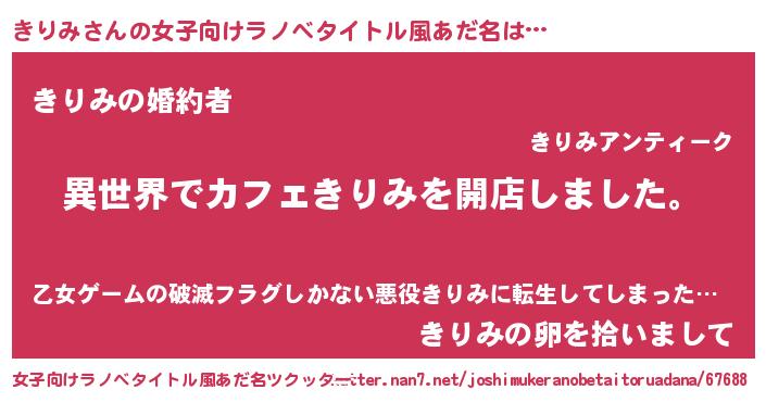 | 男性向けラノベタイトル風あだ名 | 『誰もが恐れるあのきりみが、ぼくの専属メイドになるようです。』 |