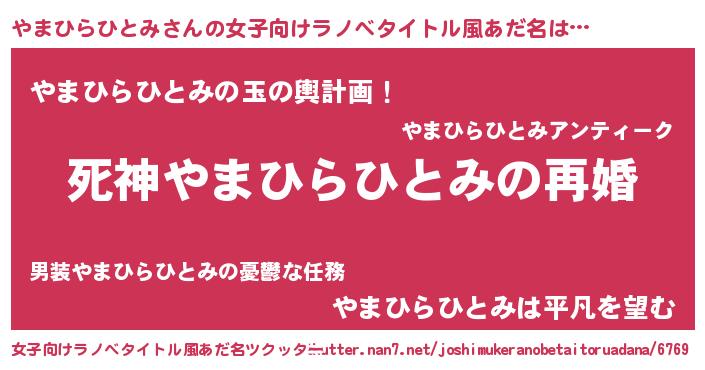 | 男性向けラノベタイトル風あだ名 | 『ノーゲーム・ノーヤマヒラヒトミ』 |
