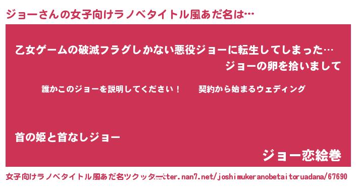 | 男性向けラノベタイトル風あだ名 | 『ジョーアートオンライン』 |