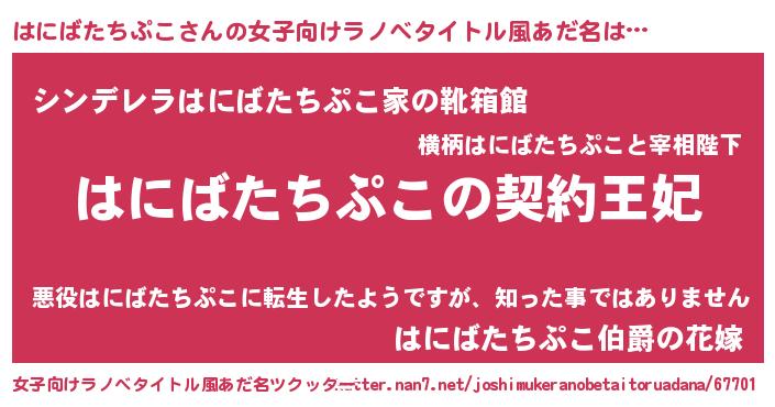 | 肩書あだ名 | 『はにばたちぷこ先生』 |