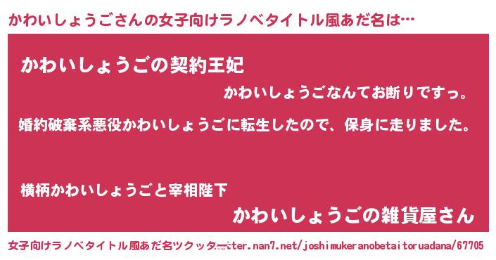 | 胡散臭い通販商品みたいなあだ名 | 『絶対に幸福をもたらす招き猫…その名も「かわいしょうご」』 |