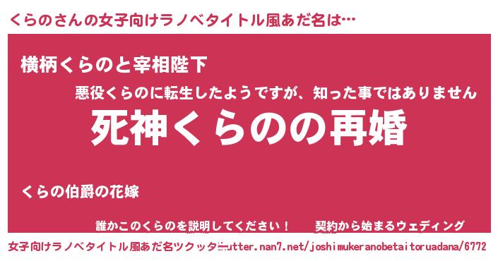 | 男性向けラノベタイトル風あだ名 | 『ノーゲーム・ノークラノ』 |