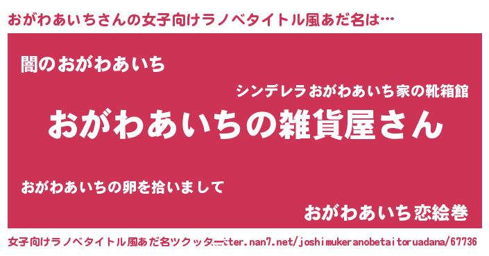 | 男性向けラノベタイトル風あだ名 | 『やはりおがわあいちの青春ラブコメはまちがっている 』 |