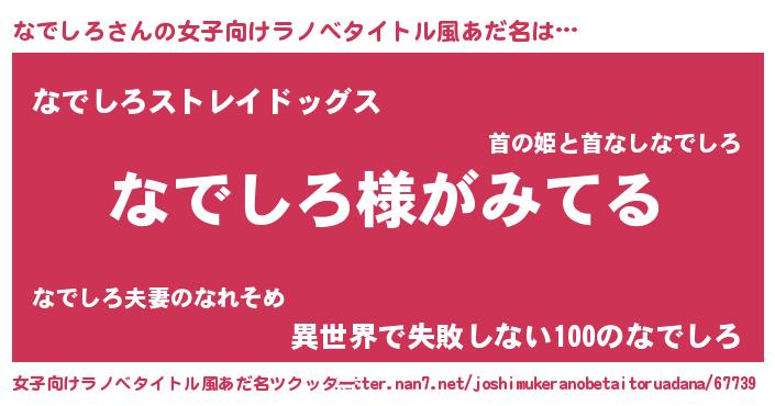 | 男性向けラノベタイトル風あだ名 | 『なでしろの嫁は女の子じゃないと思った?』 |