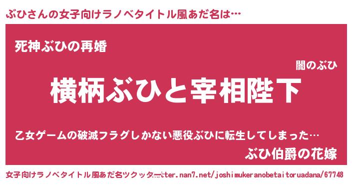 | 男性向けラノベタイトル風あだ名 | 『ぶひに滅ぼされるだけの簡単なお仕事です』 |