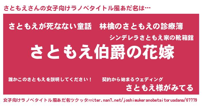 | 意味不明あだ名 | 『さともえフォーエバー』 |