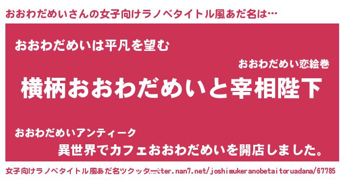 | 胡散臭い通販商品みたいなあだ名 | 『全米が絶賛したサプリメント…その名も「おおわだめい」』 |