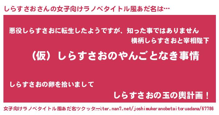 | 胡散臭い通販商品みたいなあだ名 | 『必ず成功するブレスレット…その名も「しらすさお」』 |