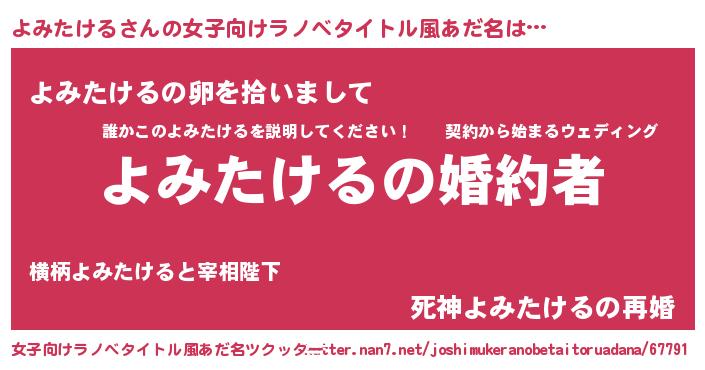 | ファンタジー風あだ名 | 『エターナルヨミタケルー』『ヨミフェル』 |