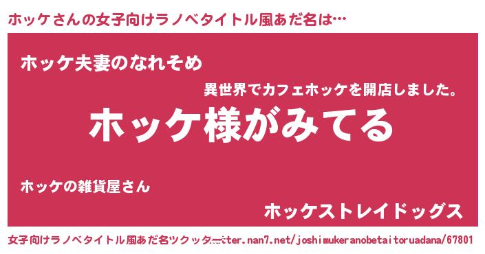 | ヒーロー風カッコイイあだ名 | 『天弓騎士ホッ』『正義の使者ホッケ』 |