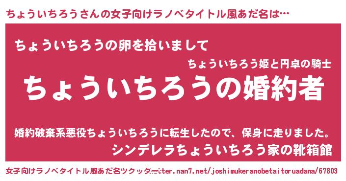 | 意味不明あだ名 | 『ちょういちろうフォーエバー』 |
