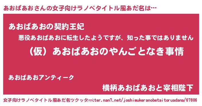 | 男性向けラノベタイトル風あだ名 | 『あおばあおの憂鬱』 |