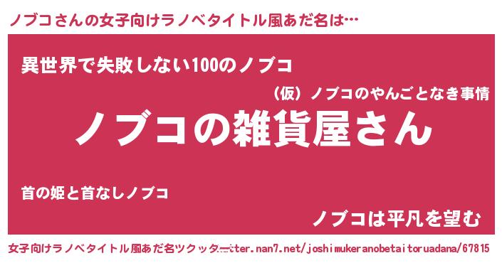 | ファンタジー風あだ名 | 『エターナルノブコー』『ノブディッシュ』 |