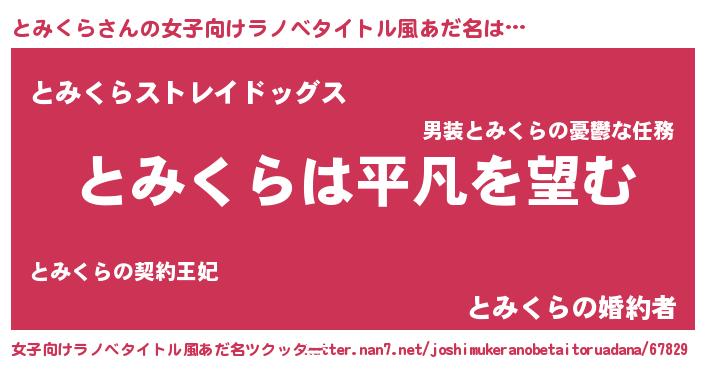 | 男性向けラノベタイトル風あだ名 | 『ダンジョンにとみくらを求めるのは間違っているだろうか』 |