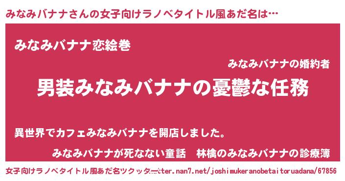 | 男性向けラノベタイトル風あだ名 | 『うちのみなみバナナが世界を掌握している!』 |