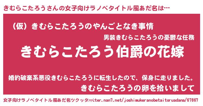 | ファンタジー風あだ名 | 『エターナルキムラコタロウー』 |