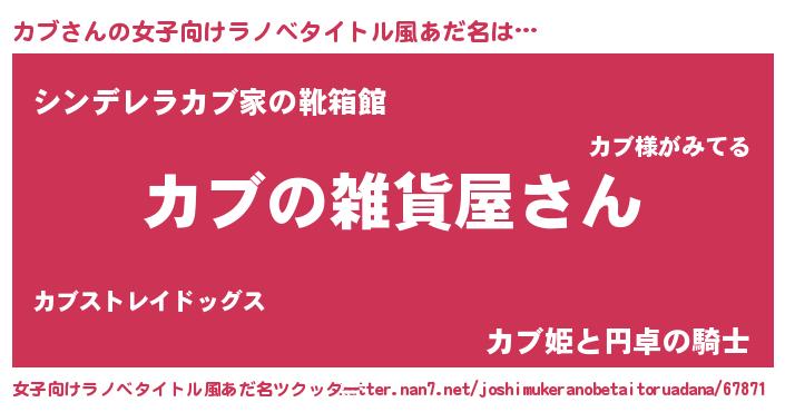 | 男性向けラノベタイトル風あだ名 | 『やはりカブの青春ラブコメはまちがっている 』 |