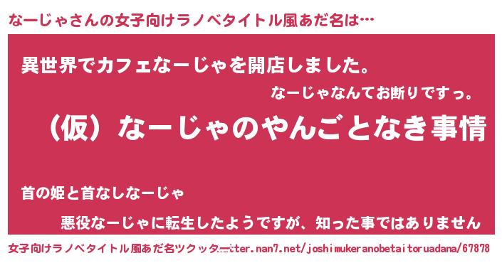 | 男性向けラノベタイトル風あだ名 | 『なーじゃの憂鬱』 |