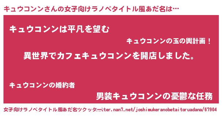 | 男性向けラノベタイトル風あだ名 | 『誰もが恐れるあのキュウコンンが、ぼくの専属メイドになるようです。』 |