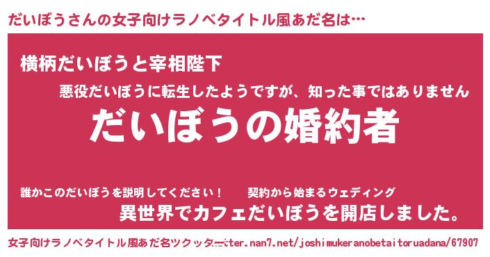 | 意味不明あだ名 | 『だいぼうフォーエバー』 |