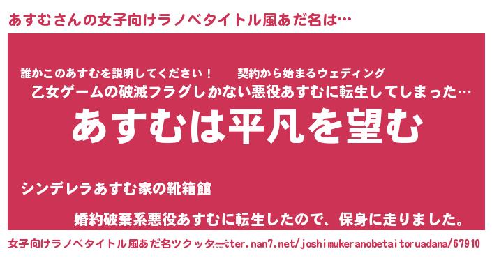 あすむさんの女子向けラノベタイトル風あだ名
