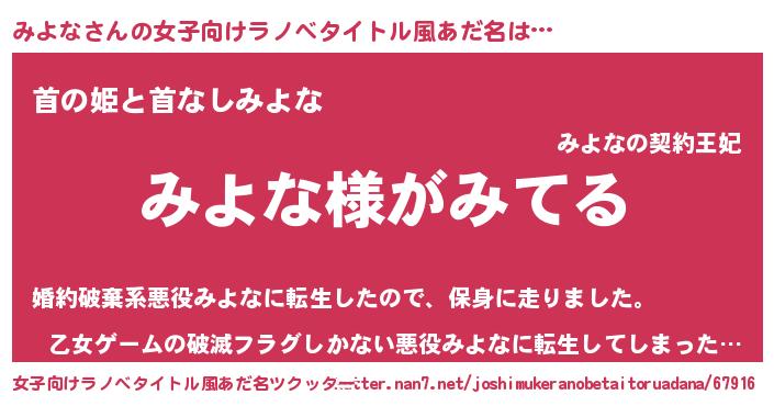 | ポケモン風あだ名 | 『ヒミヨナ』『ミヨゴンZ』『ミーヨイ』 |