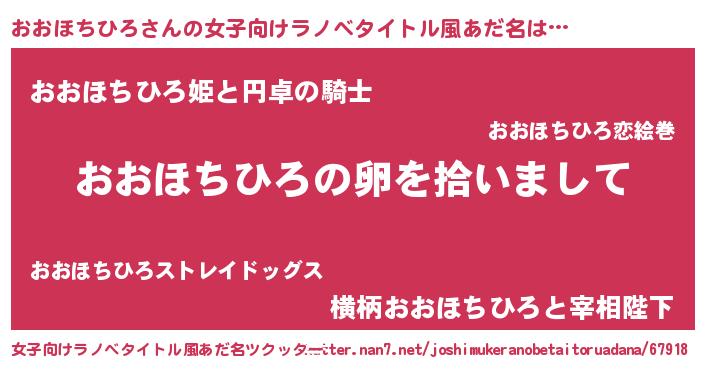 | 男性向けラノベタイトル風あだ名 | 『ダンジョンにおおほちひろを求めるのは間違っているだろうか』 |