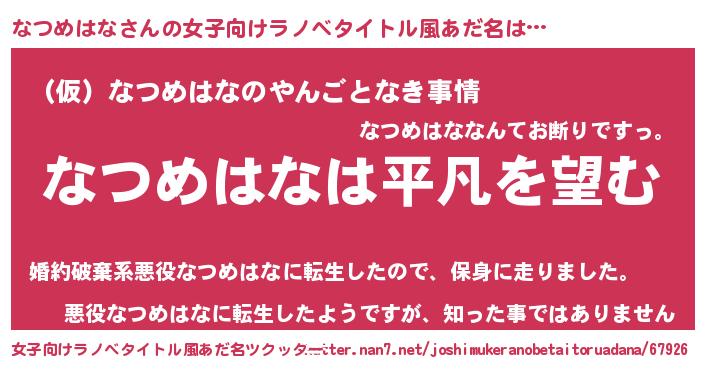 | 胡散臭い通販商品みたいなあだ名 | 『信頼と実績のネックレス…その名も「なつめはな」』 |