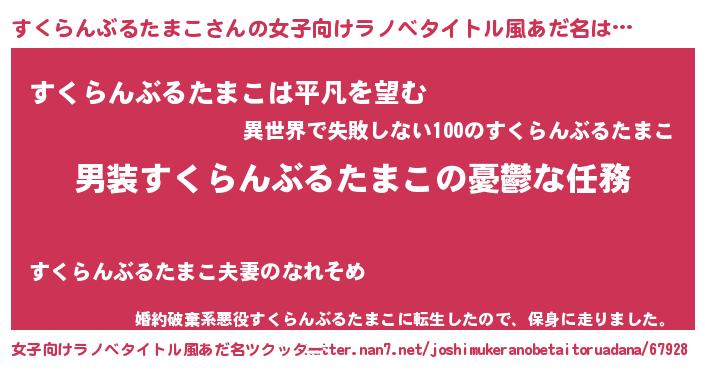 | 意味不明あだ名 | 『とにかく怪しいすくらんぶるたまこ』 |