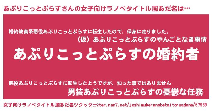 | 胡散臭い通販商品みたいなあだ名 | 『運命の人と巡り会える高級そうな壺…その名も「あぷりこっとぷらす」』 |