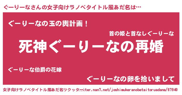 | 男性向けラノベタイトル風あだ名 | 『ノーゲーム・ノーグーリーナ』 |