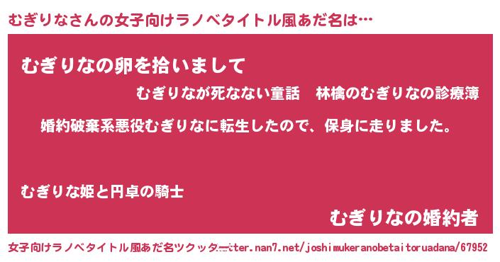 | 男性向けラノベタイトル風あだ名 | 『ムギリナスレイヤー』『むぎりなの憂鬱』 |