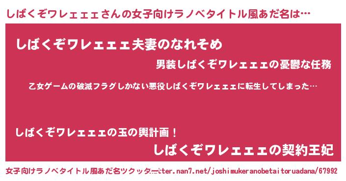 | 男性向けラノベタイトル風あだ名 | 『魔弾の王としばくぞワレェェェ』 |