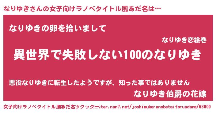 | 胡散臭い通販商品みたいなあだ名 | 『絶対に幸福をもたらす健康食品…その名も「なりゆき」』 |