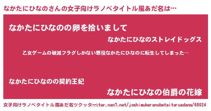 | 男性向けラノベタイトル風あだ名 | 『魔弾の王となかたにひなの』 |