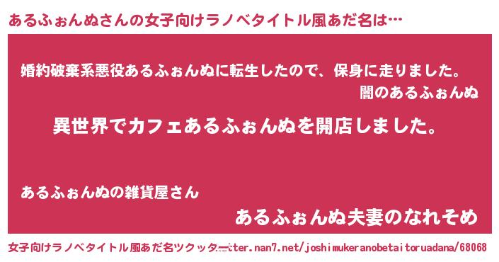 | 意味不明あだ名 | 『永久保存あるふぉんぬ』 |