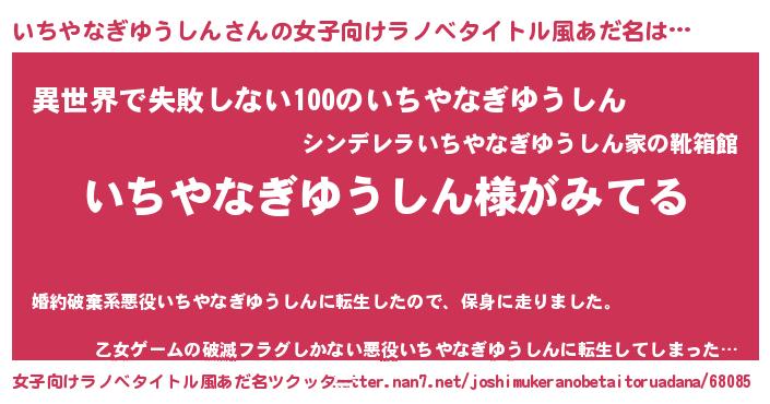 | 胡散臭い通販商品みたいなあだ名 | 『全米が絶賛したサプリメント…その名も「いちやなぎゆうしん」』 |