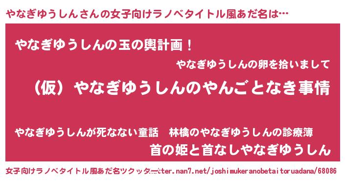 | 男性向けラノベタイトル風あだ名 | 『やなぎゆうしんの憂鬱』 |