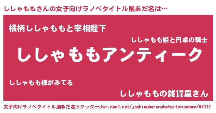 | 肩書あだ名 | 『ししゃもも閣下』『ししゃもも大統領』 |