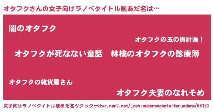 | 意味不明あだ名 | 『住所不定無職オタフク(8歳)』 |