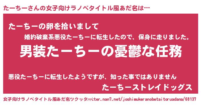 | ヘコむあだ名 | 『たーっちょ』『レバニラ』 |