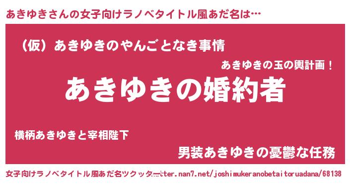 | 意味不明あだ名 | 『あきゆきフォーエバー』『自称あきゆき』 |